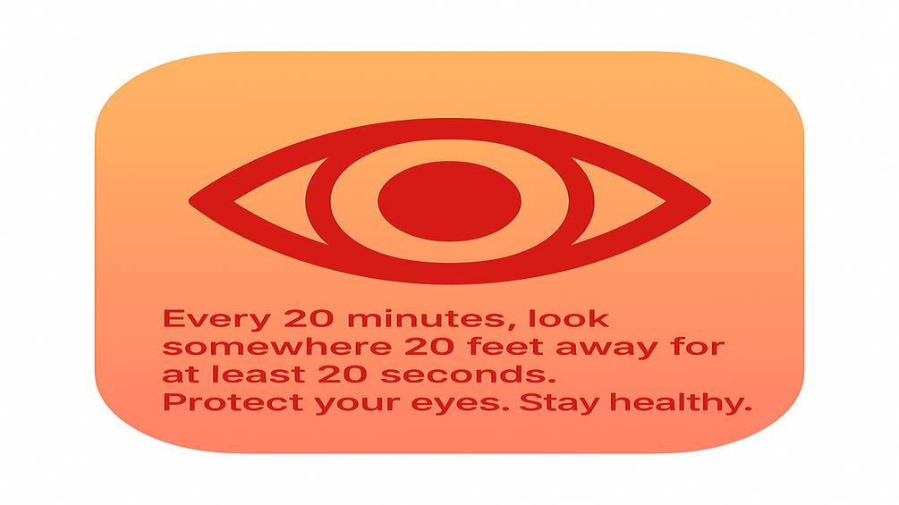 An app that prevents your eyes from having vision problems and other eye health issues by reminding and persuading you to stare 20 feet away every 20 minutes